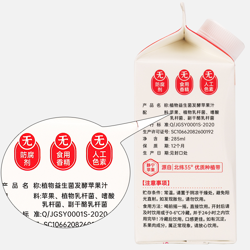 静宁植物益生菌发酵苹果汁285ML*8