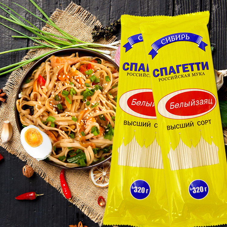 俄罗斯进口全麦加工成 面粉雪兔挂面320g 一份5袋无添加特级面条